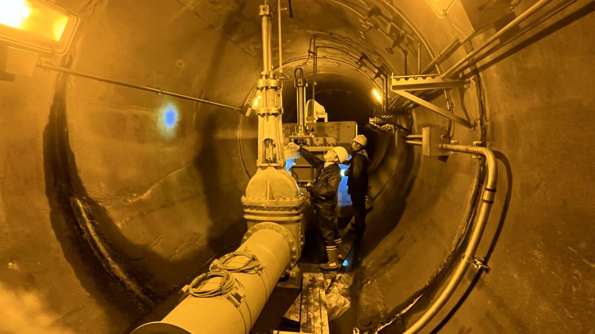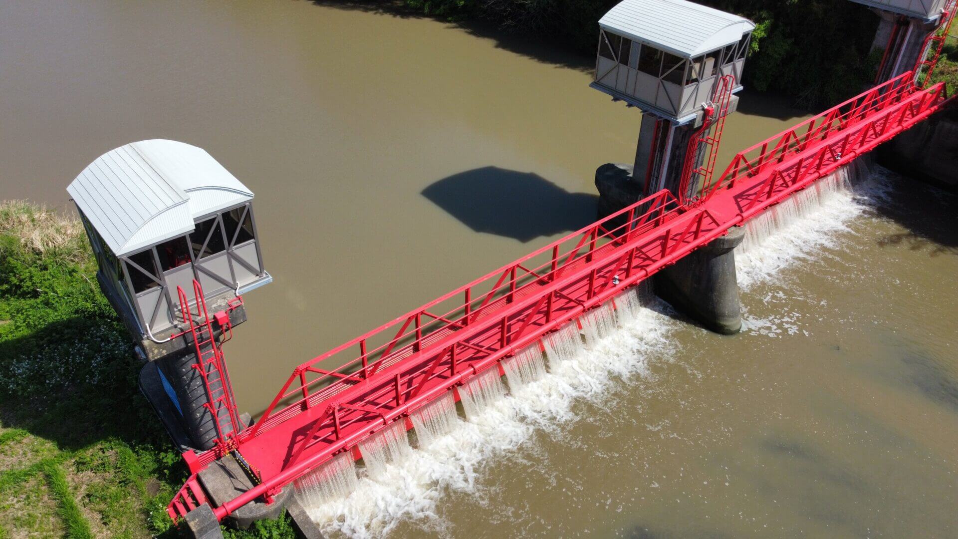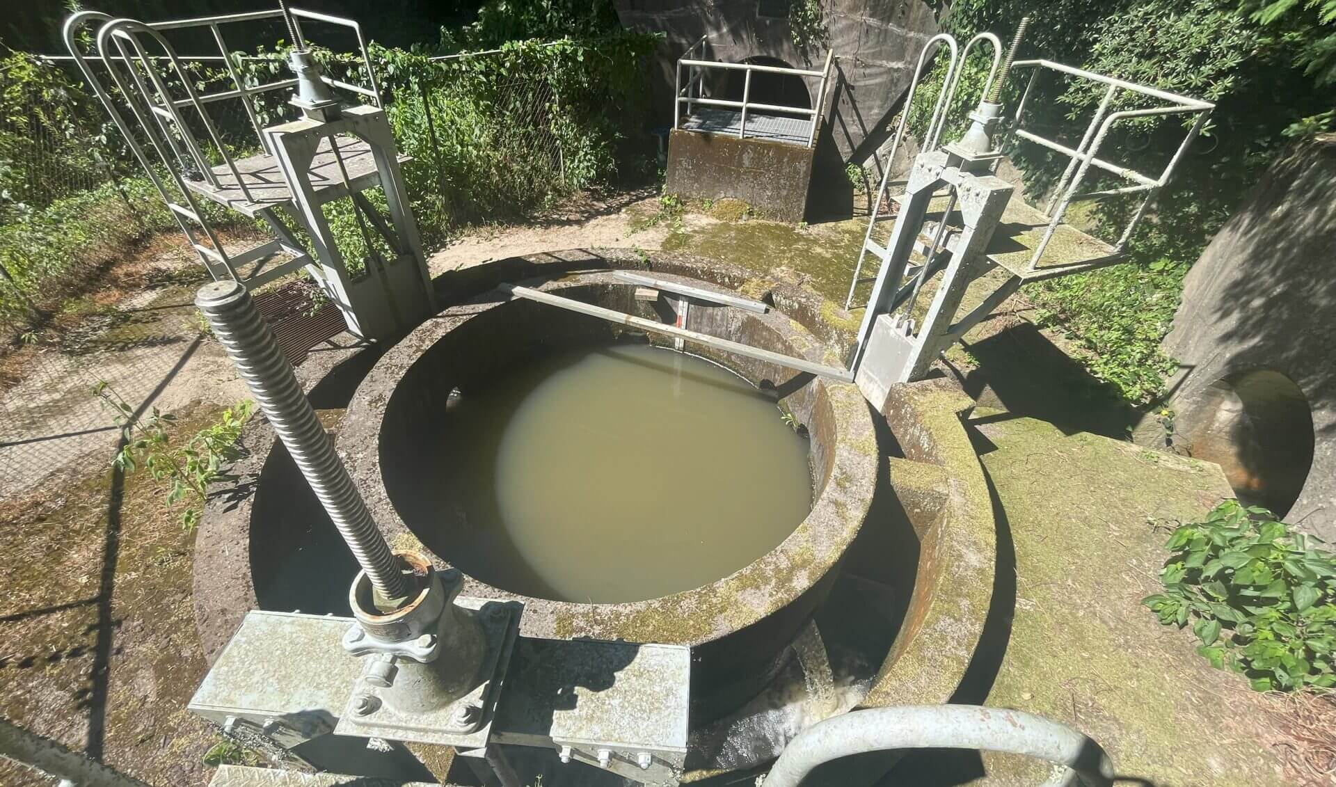 - 現在ダム堆砂調査等のためダム水位を下げています。