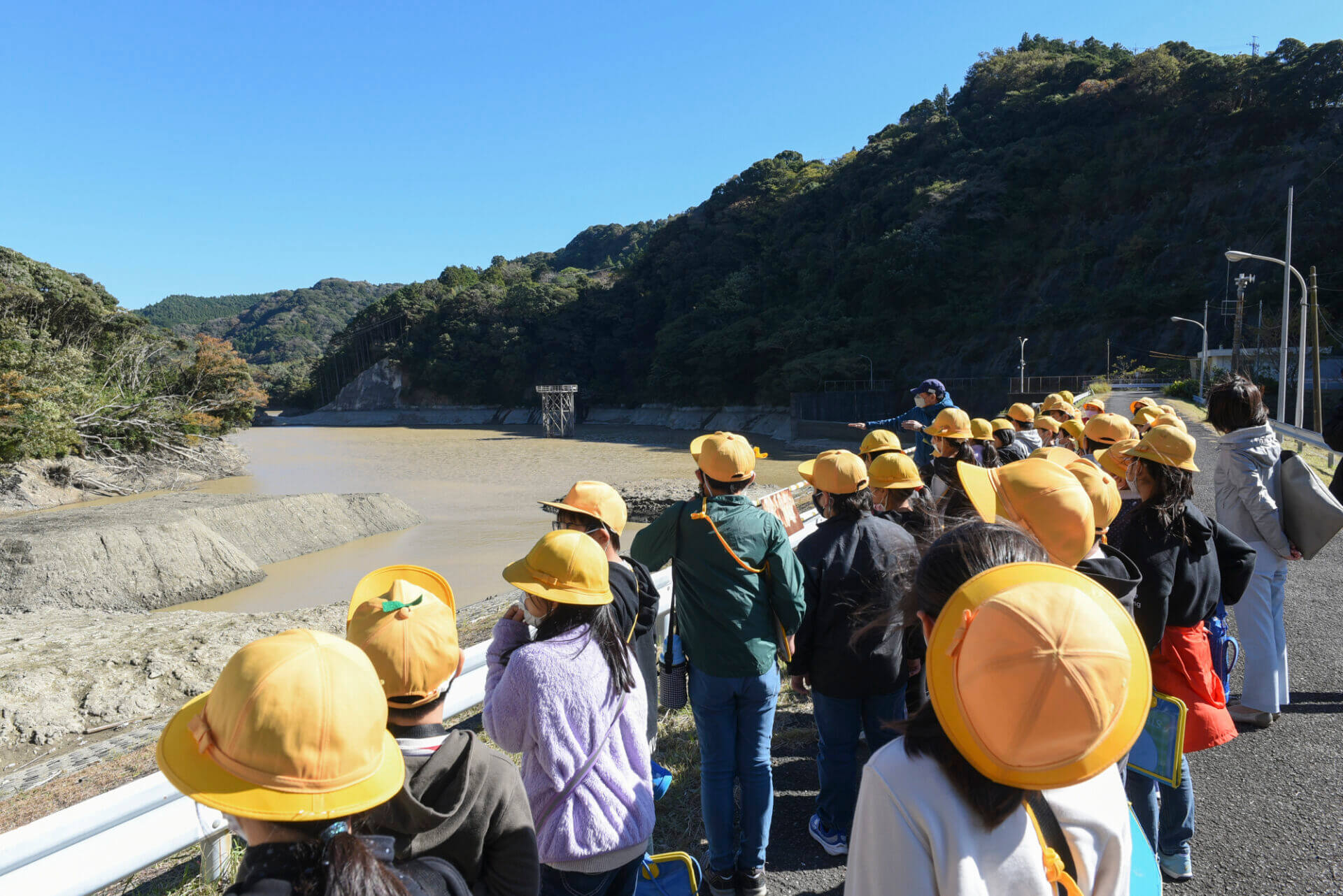 嶺南小学校校外学習、吹代ため池、嶺南小・中学校、平久里川防潮堰、館山山本堰、国分高井堰、安房中央ダム、取水用ジェットフローゲート、管理棟、放流・取水導水施設、滝の谷円筒分水