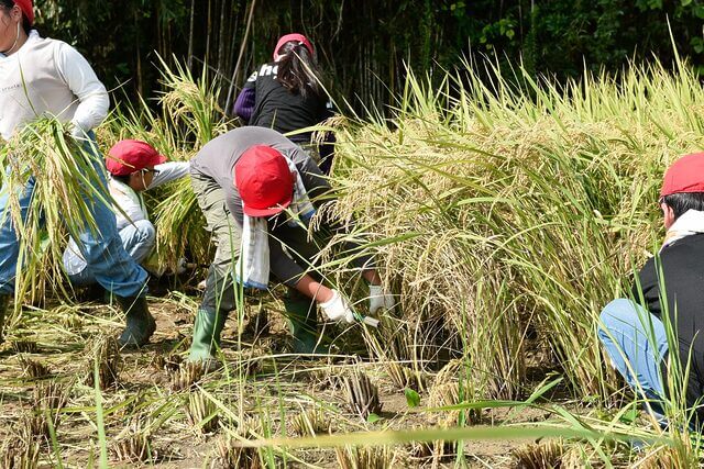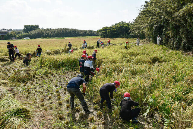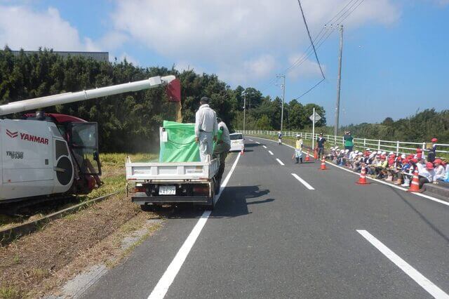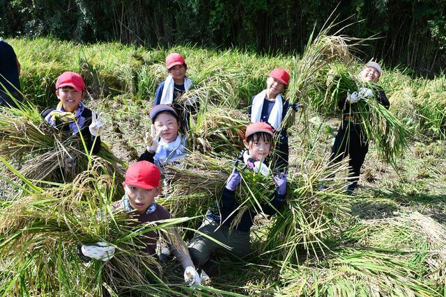 令和7年9月17日(水)、「丸山川右岸環境保全組合」(会長 尾形茂樹)と「安房中央土地改良区」主催による南房総市立嶺南小4年生の稲刈りが実施されました。