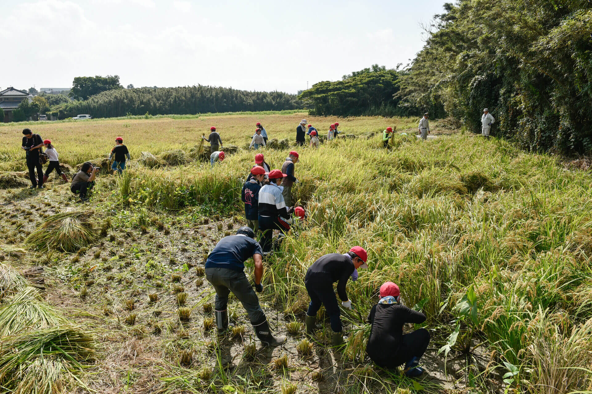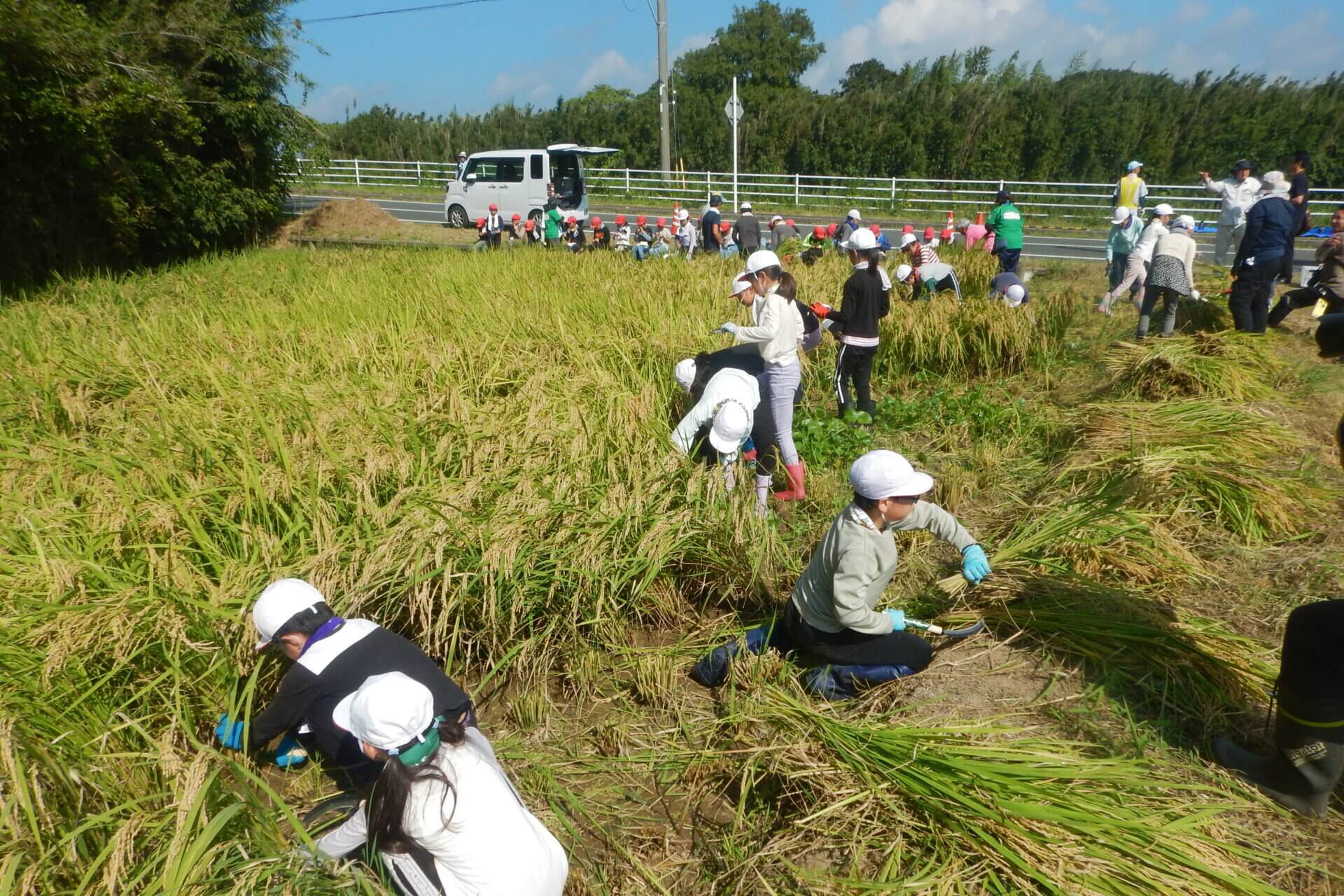 令和7年9月17日(水)、「丸山川右岸環境保全組合」(会長 尾形茂樹)と「安房中央土地改良区」主催による南房総市立嶺南小4年生の稲刈りが実施されました。