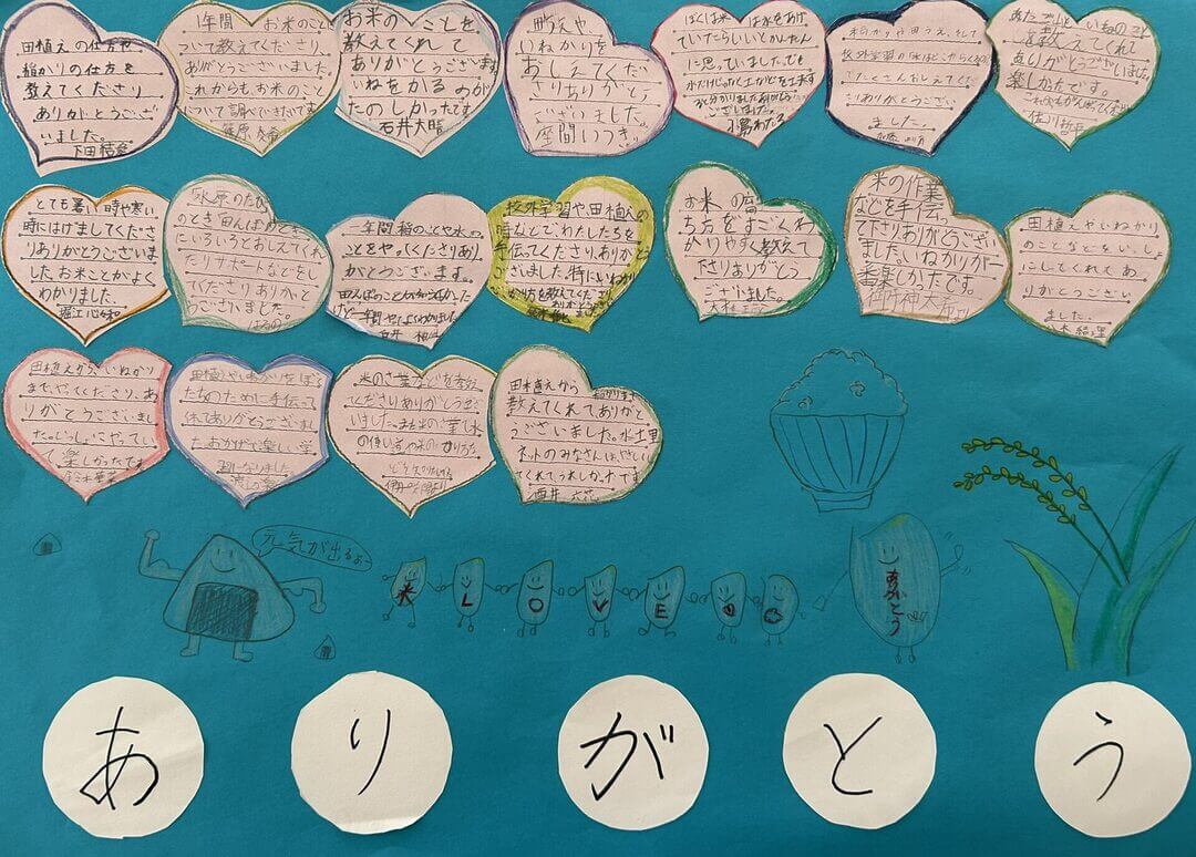 最後に「農事組合法人かざぐるまファーム」の乾燥調整施設を見学し、自分たちが田植え・稲刈り等で関わった「刈り取った稲(籾:もみ)がどのようにして精米されるのか」や「乾燥調整施設の仕組み」「お米の話」等についていろいろ学ぶことができました。